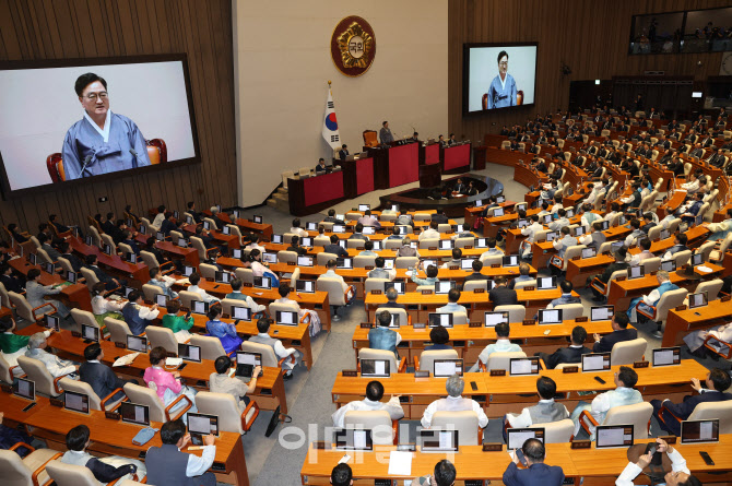 [이데일리 노진환 기자] 우원식 국회의장이 1일 오후 서울 여의도 국회에서 열린 제429회 국회(정기회) 개회식에서 개회사를 하고 있다.